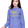 – Chi tiết áo: Lá cổ, măng sét, nẹp khuynh có ép keo chống nhăn, tà áo chữ U, đô suông, tùy chọn có túi ngực hoặc không, dài áo đóng thùng được, trụ nút tay áo có 1 nút phụ, áo nam có bóp eo nhẹ 2 cm, áo nữ có chích eo. (có thể tùy chỉnh thông số trên khi đặt đồng phục)